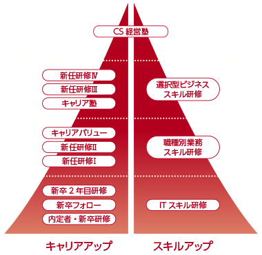 新入社員研修をはじめ、ITスキルや業務スキル、選択型ビジネススキル研修など、401講座の研修プログラムを用意し、社員のキャリアアップ・スキルアップを支援しています。