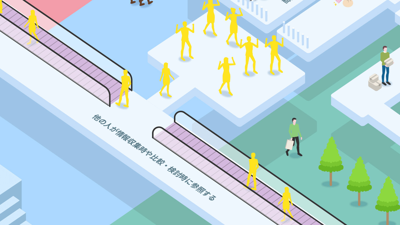 消費者が購入候補となる商品を選ぶとき、独りで決めることは稀で、8割以上が知人に相談したり、SNSを見たりして比較検討するんだぞ