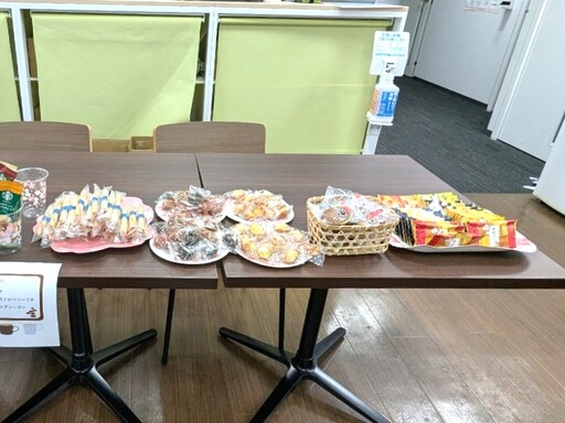 このイベントでは、「出張パン屋」さんによる美味しいパンの販売をはじめ、色とりどりのお菓子や爽やかなドリンクの配布が行われ、参加者たちは笑顔でそれを楽しみました。テーブルを囲みながら、楽しい会話が弾み、リラックスした雰囲気の中で貴重なひとときを過ごしました。